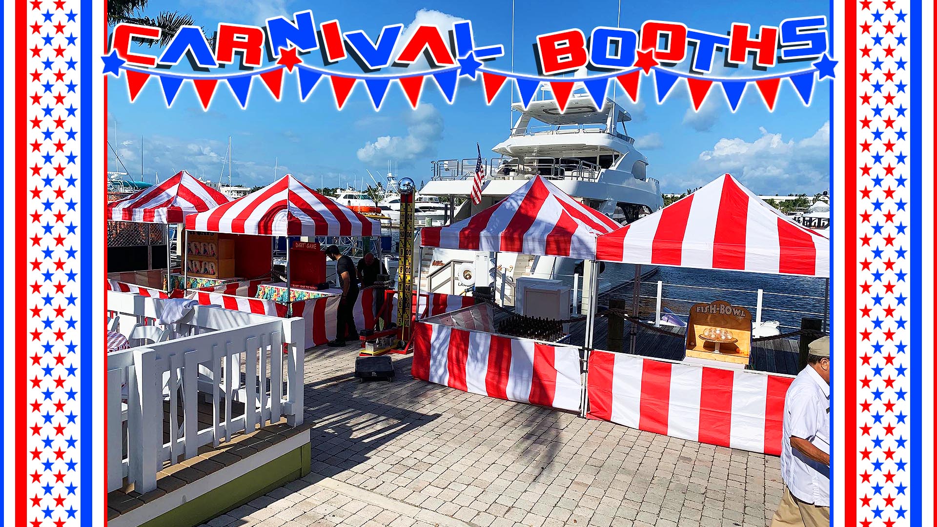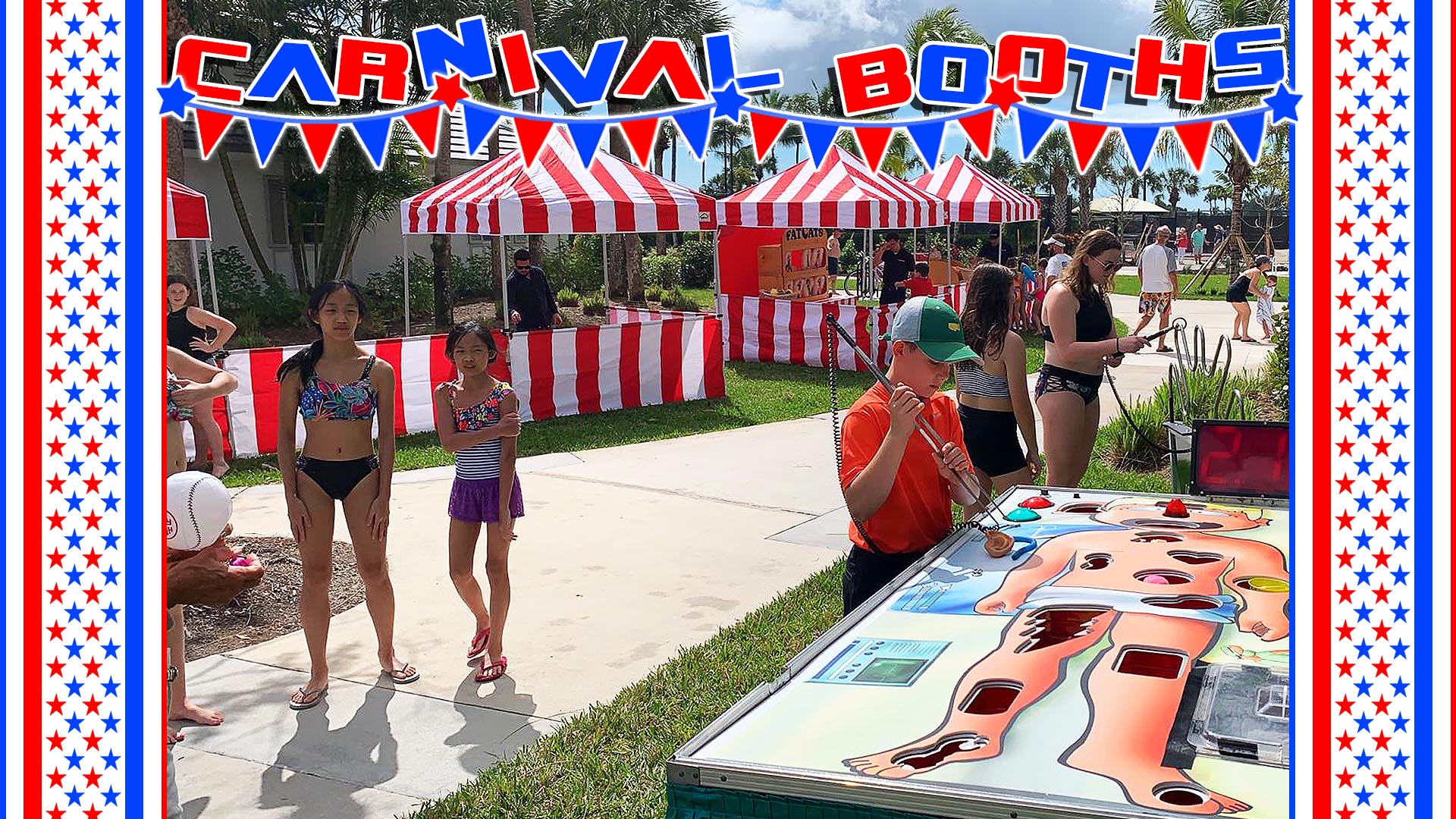 Includes colorful velcro receptive canvas backdrop (7' x 7'), chipping mat, chipping wedge golf club, 12 special weighted, velcro practice golf balls, and attendant. Carnival Booth Not Included.Includes colorful canvas backdrop (7' x 7'), soft footballs, and attendant. Carnival Booth Not Included.