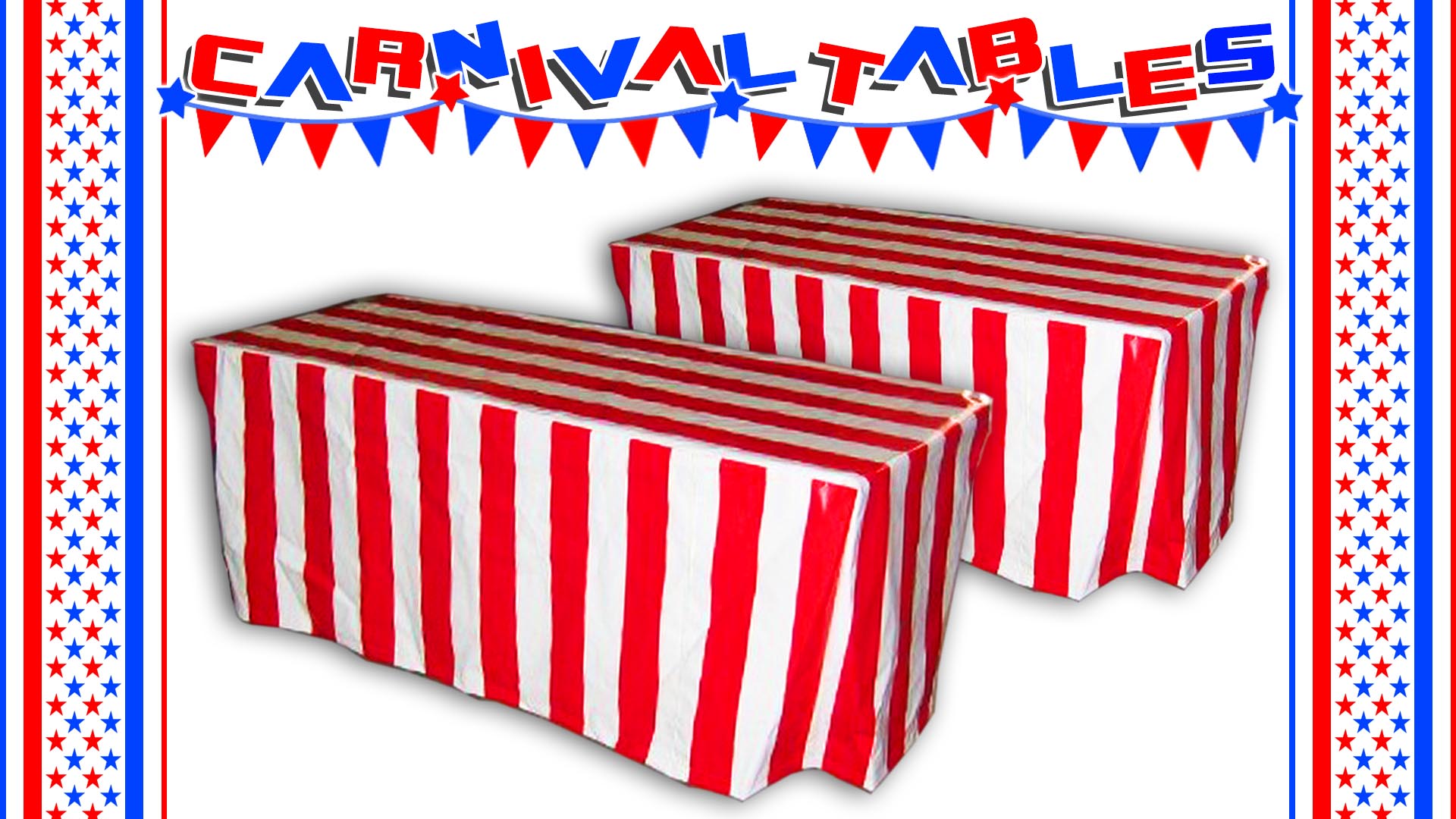 8' x 8' Carnival Canopy + 3 Side Skirts.6' Tables with Carnival Table Covers also Available